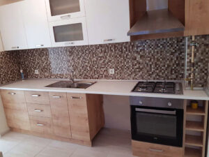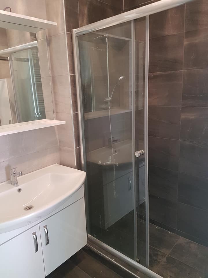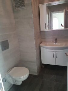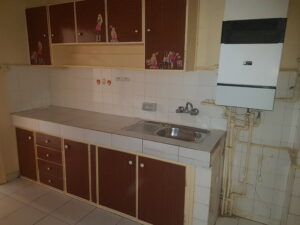 Komple tadilata giren dairede yapılan fizibiliteler sonunda antre ile salonu birbirinden ayıran duvar komple kırılarak daha ferah ve kullanışlı bir antre alanı oluşturuldu. Evin salon ve odalarında bulunan eski tip marleyler  8mm laminat parke ile baştan değiştirildi. Antre mutfak ve banyo gibi ıslak zeminler Bien seramik seçimi ile baştan yenilendi.  Çok eski olan mutfak dolapları hem kötü bir görünüme sahip hem kullanışsız olduğundan komple kaldırılıp yerine mdf mutfak ve mdflam mutfak tezgahı yapıldı. Binanın eski olmasından dolayı daire içerisindeki tüm elektrik ve sıcak / soğuk su tesisatları baştan aşağı yenilendi. Yeni kombi ve kombi dolabı yerleştirildi. Banyo alanı mutfakda olduğu gibi baştan aşağı kırılarak Bien seramik seçimi ile komple seramik döşendi. Vitra gömme rezervuar ve asma klozet kullanılan banyoda özel ölçü duşakabin sistemi ve mdflam banyo dolabı ile havlu dolabı kullanıldı. Mevcut peteklerin komple yenilendiği dairede banyo alanında havlupan kullanıldı.En son olarak evin komple boya işleri ile tamamlanıp yeni kiracısı ile buluşturuldu.