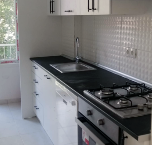 Daire genelinde yaptığımız ücretsiz keşif sonucu dairenin komple sıyırılarak baştan yapılmasına karar verildi. Tüm odalarda bulunan pvc doğralamalar Pimapen marka olarak değiştirildi. Sokak kapısı da dahil olmak üzere evin tüm oda kapıları Amerikan Panel kapıyla değiştirildi. daire genelindeki tüm oda ve salon parkeleri laminat parke ile yenilendi. Daire içerisindeki eski tip su ve elektrik tesisatı komple elden geçirldi gerekli değişimler yapıldı. Kullanılmaz halde olan banyo, wc ve mutfak komple sıyrılarak baştan projelendirildi. Mutfak ve banyo dolapları MDF olarak yeni yapılırken banyo da Kale marka gömme rezervuar ve asma klozet kullanıldı. Dairenin komple badana boya işleri sonrası daire kiralandı.